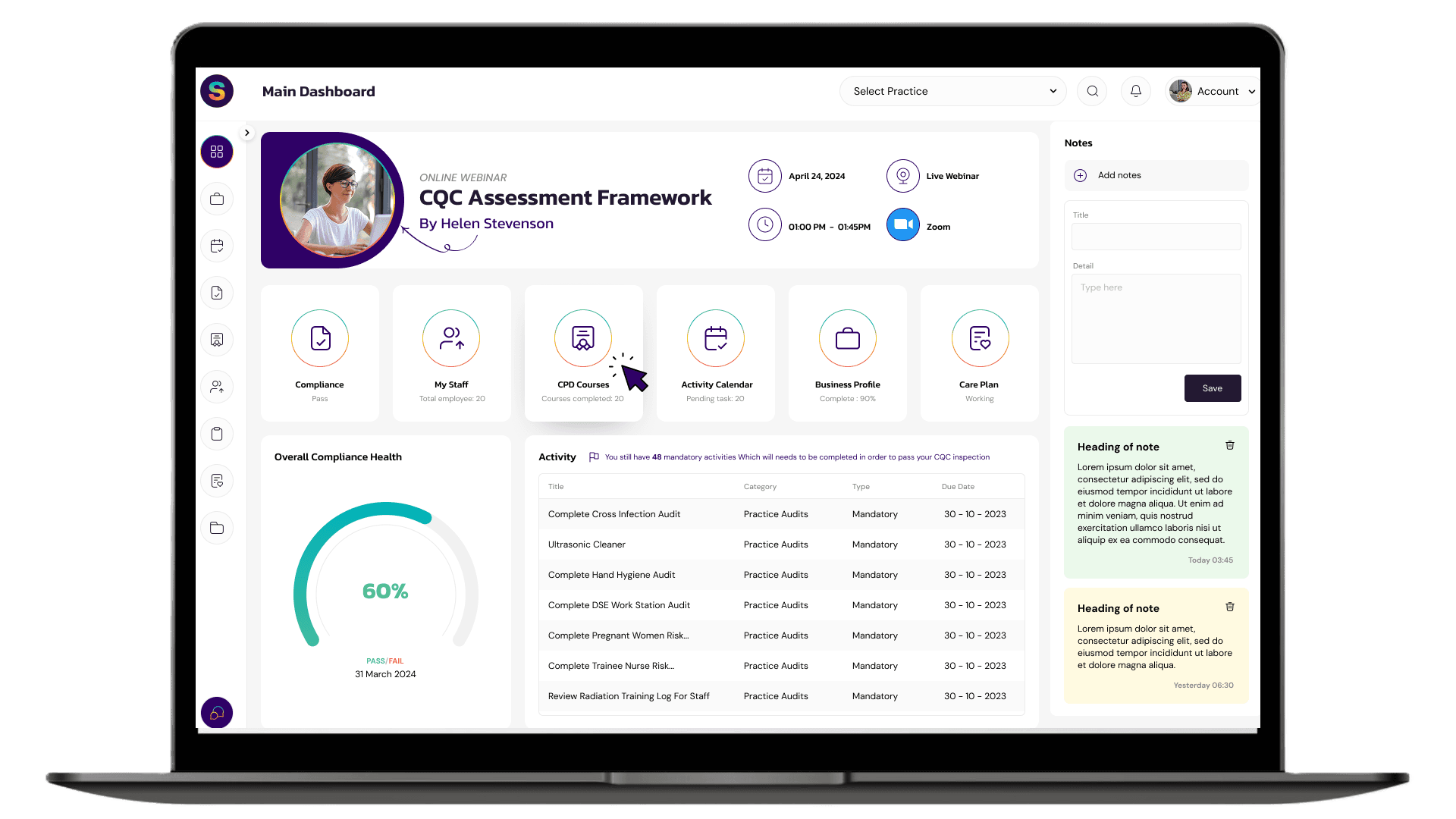 A powerful, all-in-one dashboard designed to help healthcare organizations stay inspection-ready and compliant with CQC standards.